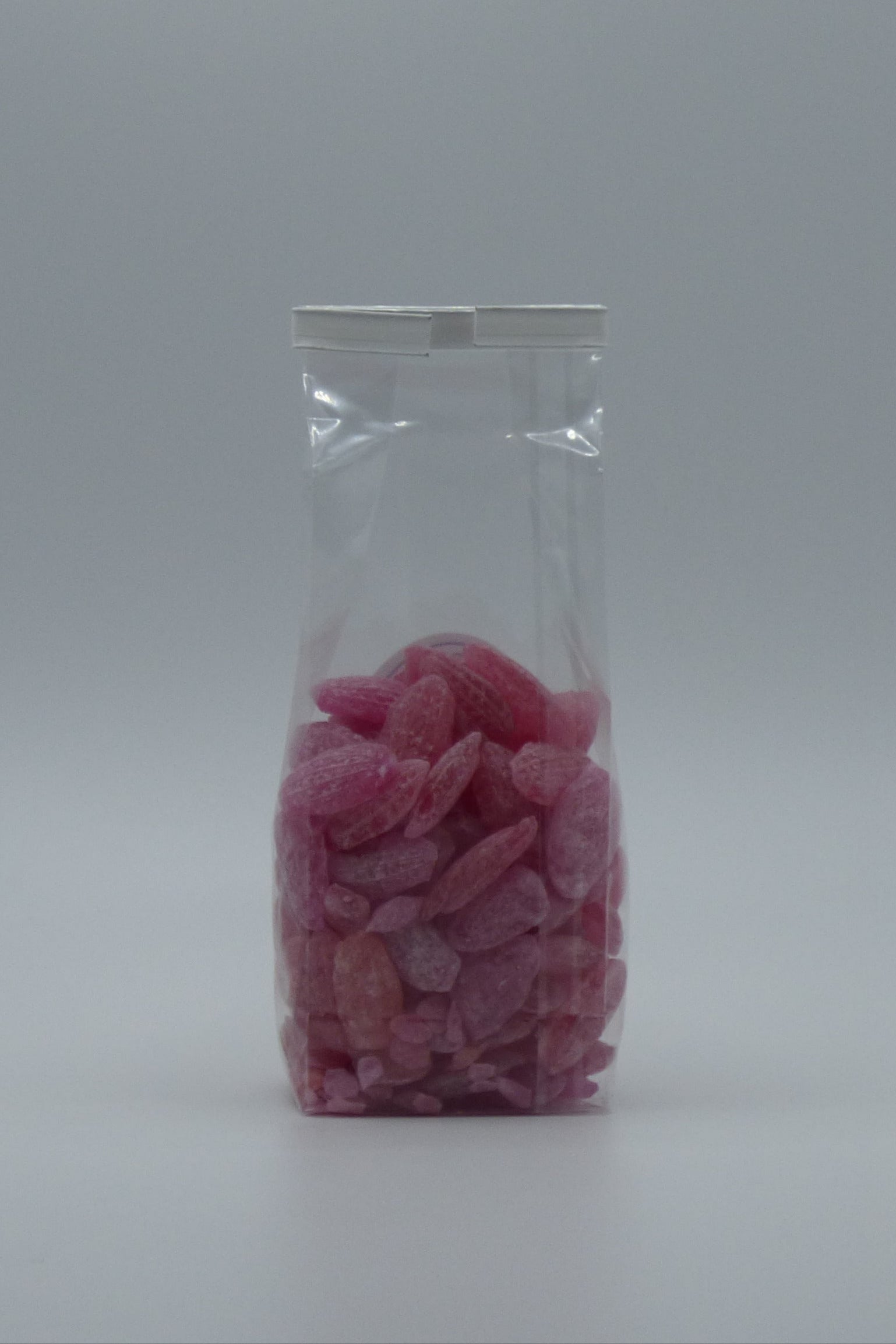 Zutaten: Zucker, Glukosesirup, Säurungsmittel Citronsäure, Aromen, färbender Pflanzenextrakt (Rote Bete)
