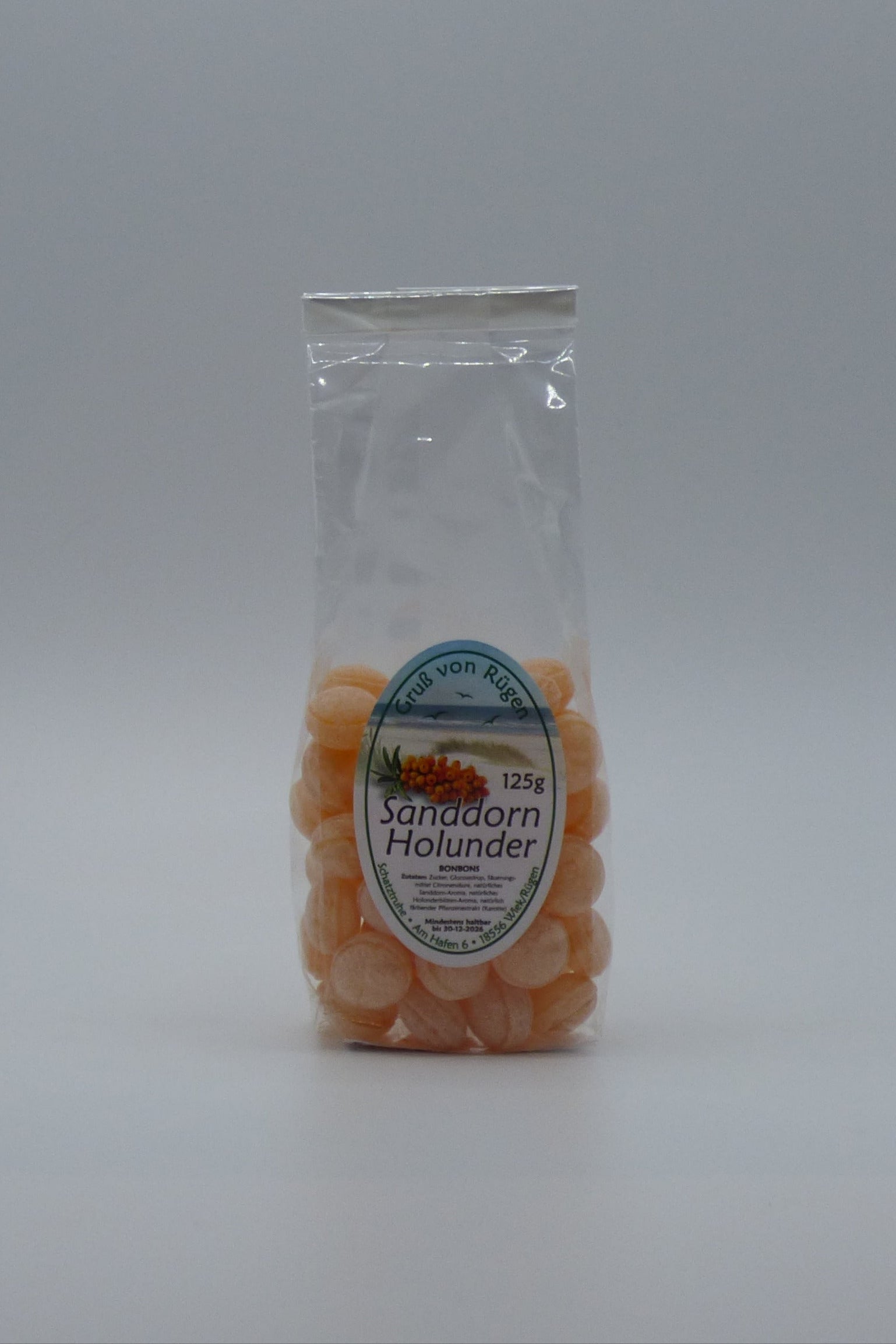 Zutaten: Zucker, Glukosesirup, Säurungsmittel Citronsäure, natürliches Sanddorn-Aroma, natürliches Holunderblüten-Aroma, natürlich färbender Pflanzenextrakt (Karotte)